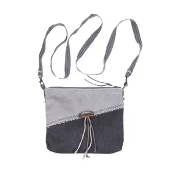 This Canvas Zipper Pouch Bag in a 2 tone grey colors. It is crafted from canvas and features a unique suede and jute tassel that hangs from a small metal hinge, adding a free-spirited vibe. Perfect for those who love laid-back boho style with thoughtful details.